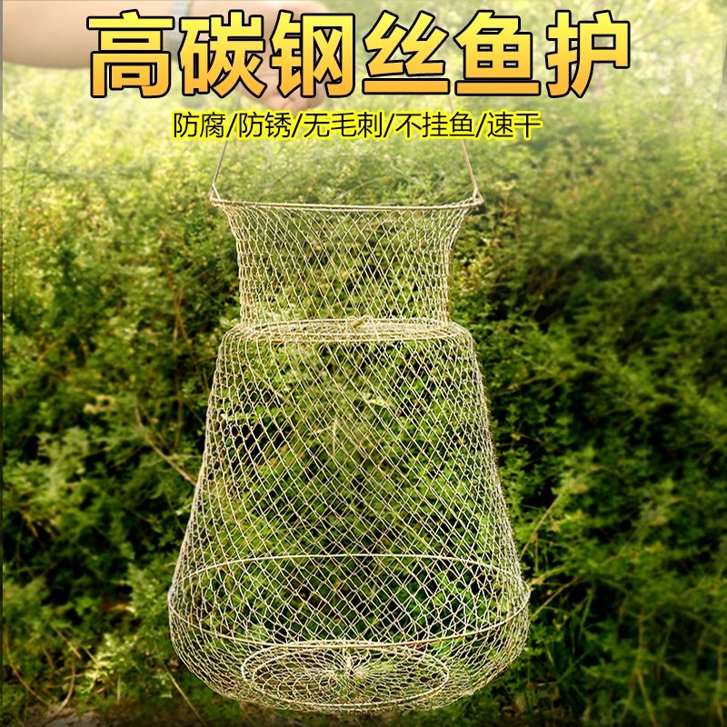 淘鱼护钢丝鱼护鱼篓网兜金属不锈钢铁丝鱼护编制鱼护装鱼金属鱼笼