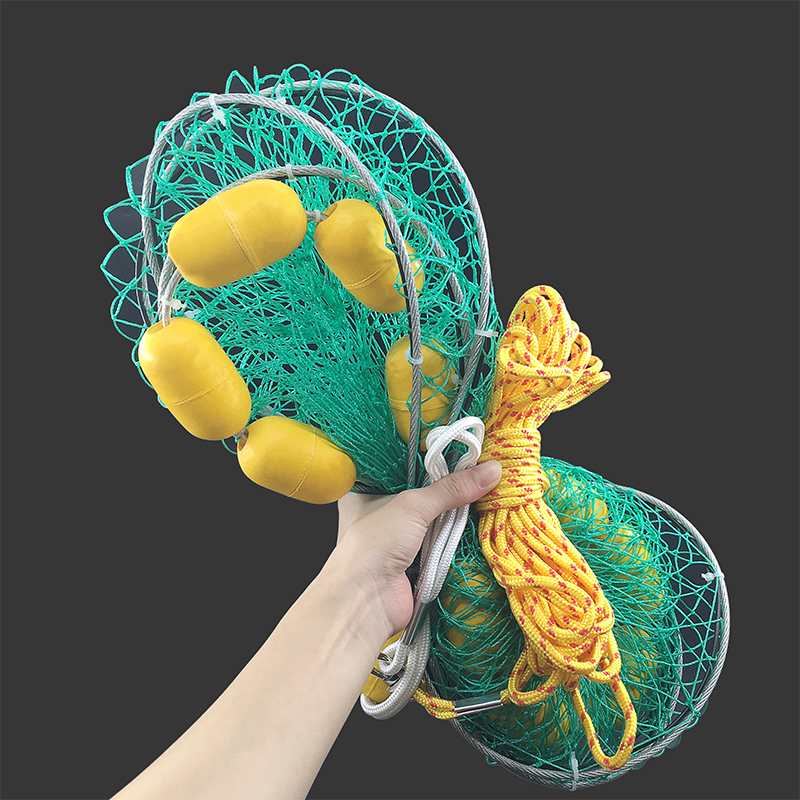新款圆形开放式折叠捕鱼笼虾笼鱼网抬网龙虾网抓鱼手抛网搬筝单人