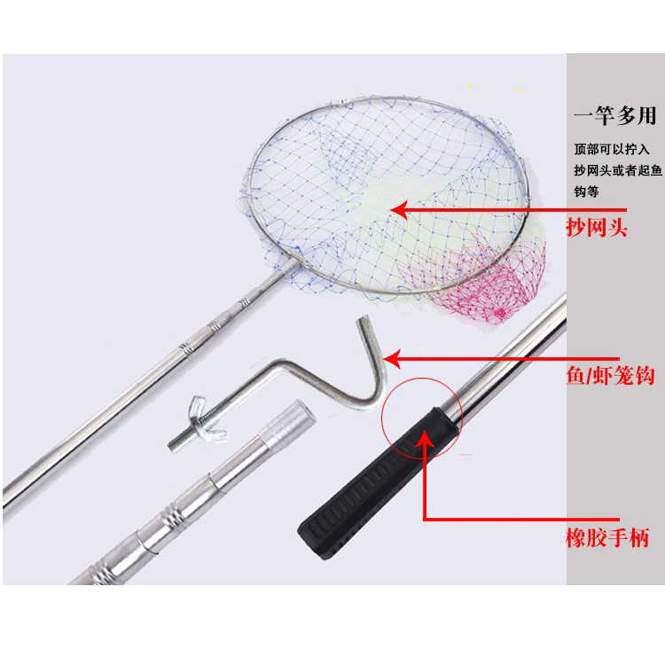 淘宝加厚不锈钢伸缩杆定鱼杆抄网杆捕鱼网杆加厚多功能鱼笼杆摘果杆