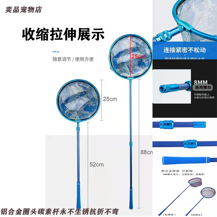 淘鱼捞不锈钢鱼网鱼缸网捞小鱼小号渔捞网兜密网手抄抄网观赏鱼伸缩
