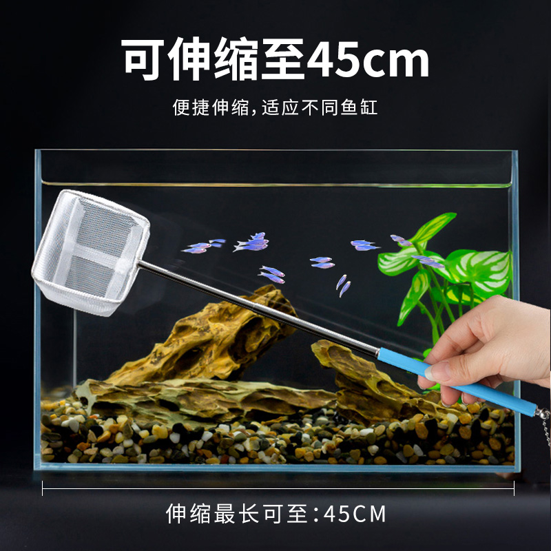 不锈钢伸缩鱼捞鱼缸渔捞网兜方形鱼捞手抄网观赏鱼捞鱼网小鱼小虾