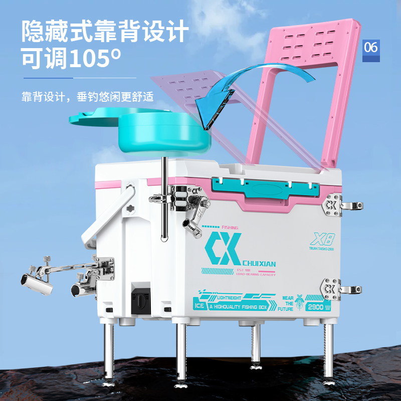天猫垂弦X8钓鱼箱多功能超轻硬29L聚氨酯无极升降钓箱台钓高坐姿加硬