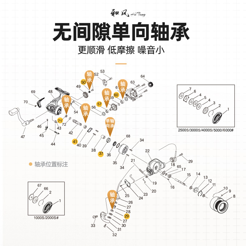 天德岛HK鱼轮14轴鱼线轮全金属线杯渔轮无间隙纺车轮斜口渔线轮渔具