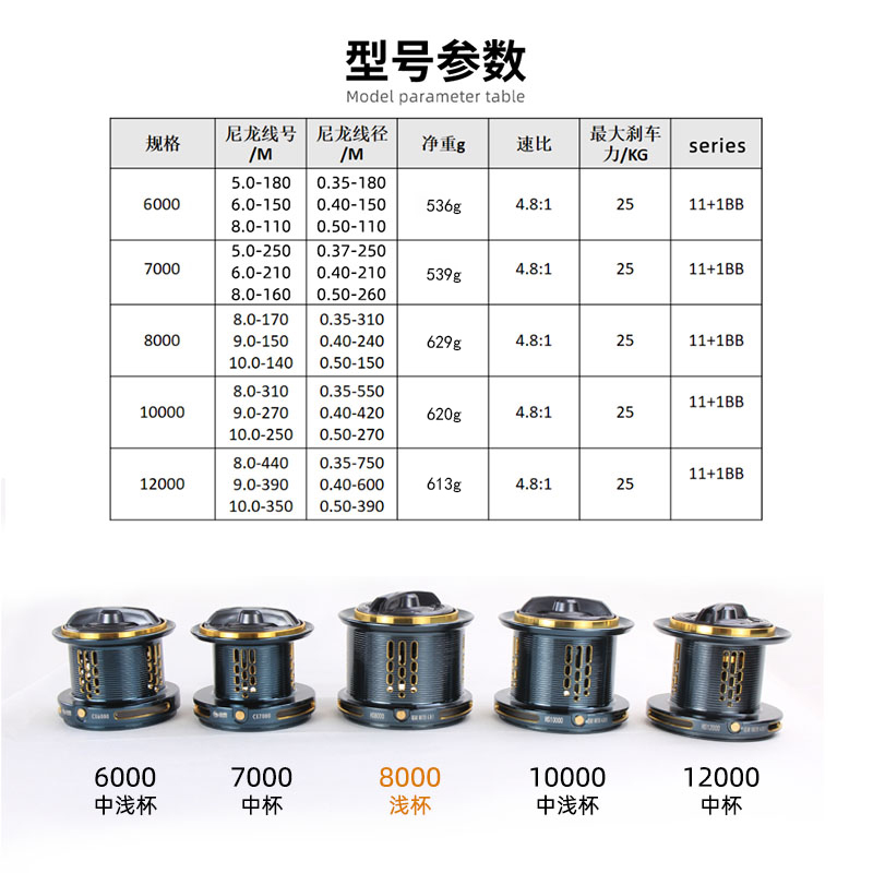 22轴全金属纺车轮路亚线杯无间隙鱼线轮子海杆抛竿远投渔轮鱼轮