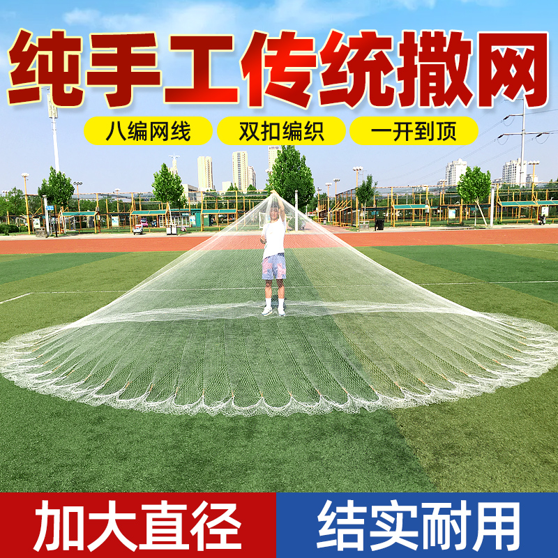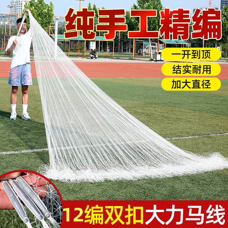 淘宝12编手工编织双扣大力马线传统手抛网旋网老式渔网铅坠鱼捞网鱼网