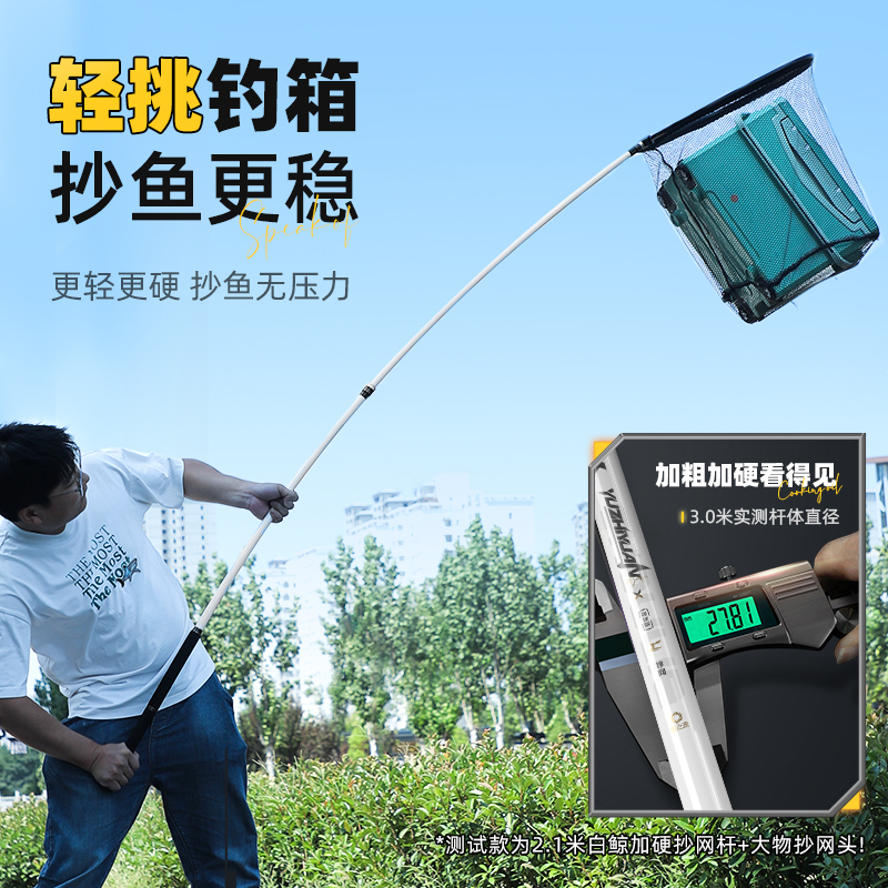 天创威凌天抄网全套组合碳素伸缩大物钓鱼抄网竿裸杆户外捞鱼网网兜