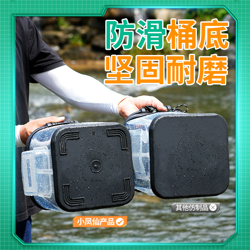 天猫小凤仙路亚活鱼桶折叠加厚装鱼桶溪流钓鱼打水桶野钓鱼护鱼箱渔具