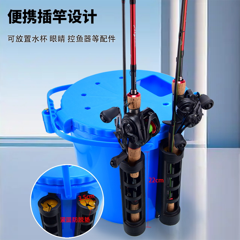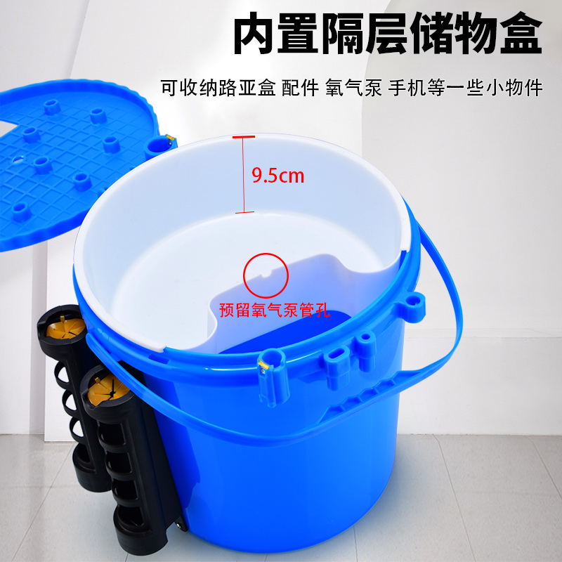 淘宝路亚专用大容量圆形钓鱼桶鱼箱插竿圆桶带杆插器多功能收纳可坐人