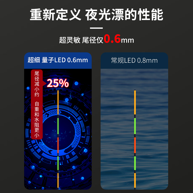 久岩BY夜光漂醒目高灵敏变色细硬尾高亮电子漂Mini LED浮漂鲫鱼漂