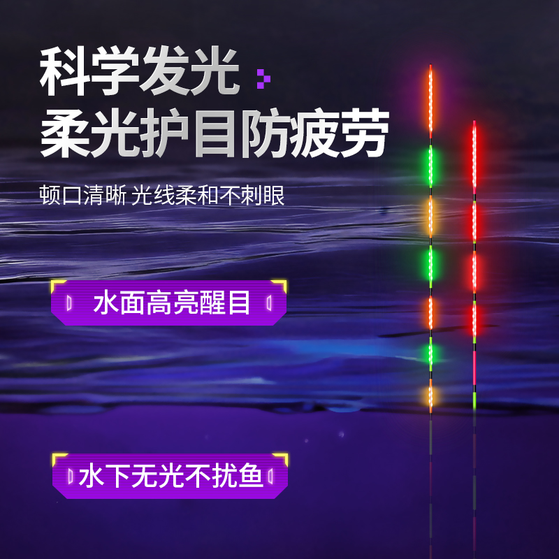 淘极细硬尾夜光鱼漂日夜两用电子醒目高灵敏超亮鲫鱼浮漂野钓变色漂