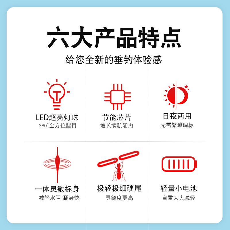 淘5支夜光漂6支高灵敏日夜两用鱼漂套装咬钩变色电子浮漂鲫鱼漂漂盒