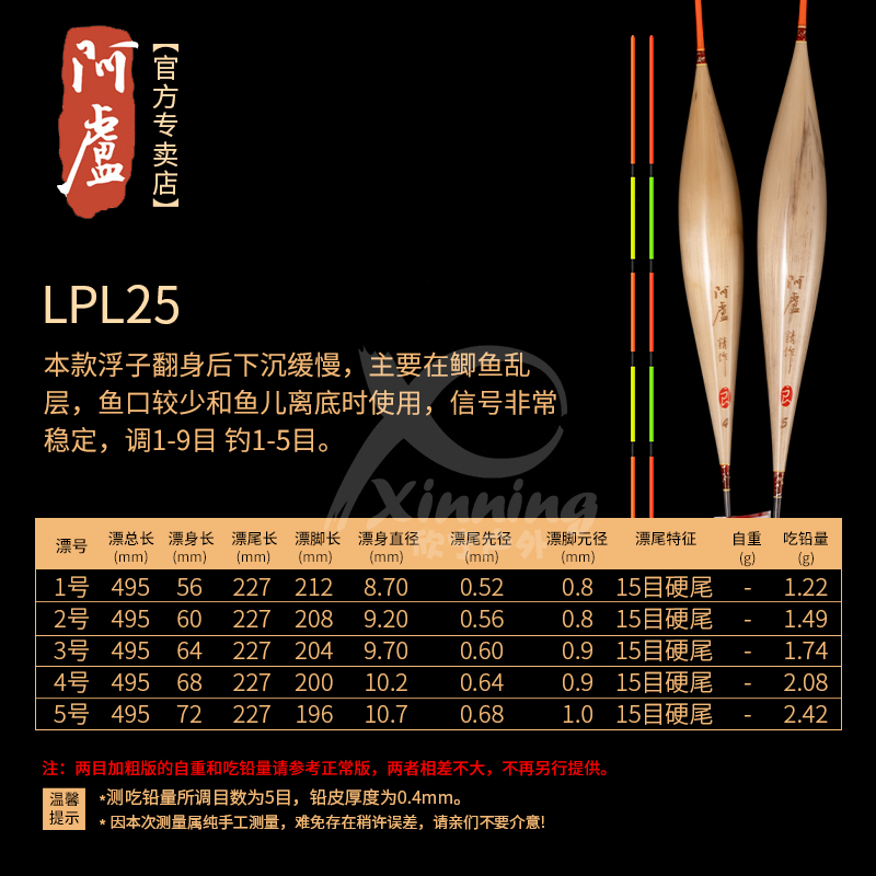 商品介绍:阿卢浮漂LPL25,是一款适用于黑坑钓鱼的高灵敏度鲫鱼漂。该产品采用细尾芦苇材质,对鲫鱼临底摸鱼时极其敏感,适合野钓使用。它的设计和性能使其在水下捕捉细微动作,帮助钓鱼者更准确地判断鱼儿的动向。无论是在黑坑还是野外水域,LPL25都能表现出卓越的浮漂性能,是钓鱼爱好者的理想选择。