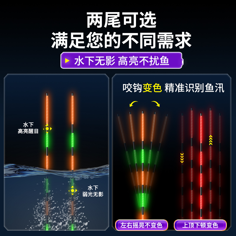 淘罗非漂专用夜光漂咬钩变色浮漂短脚长身鲫鱼漂底钓电子漂灵敏鱼漂