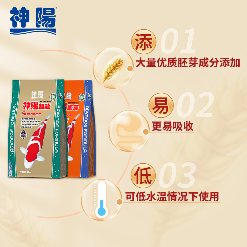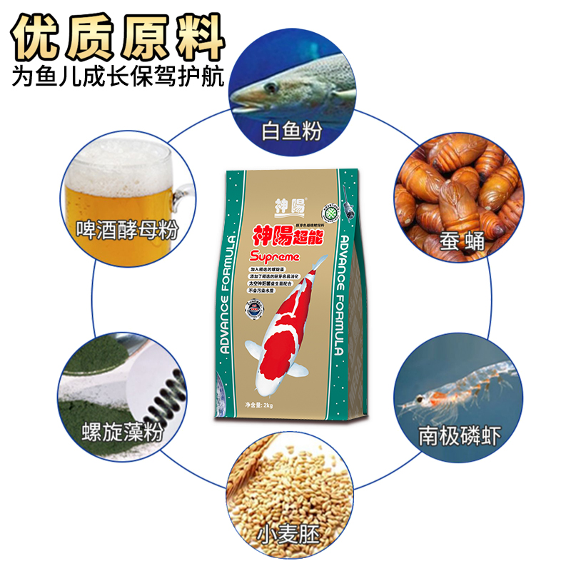 天猫神阳锦鲤专用鱼饲料增色增体胚芽易消化螺旋藻增艳上浮鱼粮2kg
