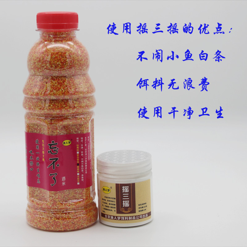 淘宝忘不了摇三摇粘粉鱼饵套装野钓鲫鱼酒米防小鱼钓鱼粘米空钩粘饵料