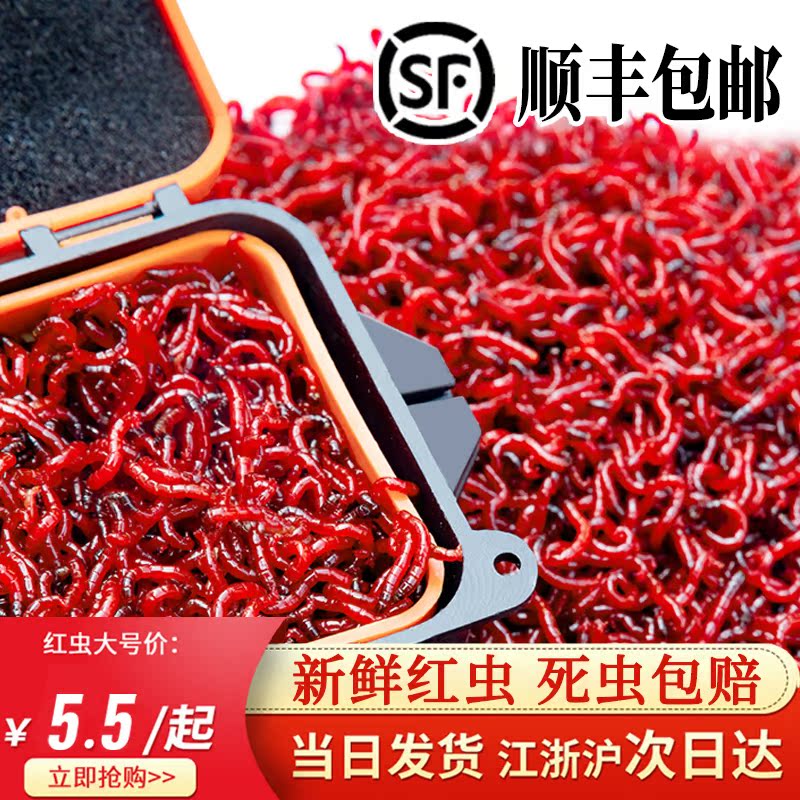 淘宝红虫活饵鲜活特大号鲫鱼饵拉饵蚯蚓鱼食公虫钓鱼新鲜红虫饵料活体