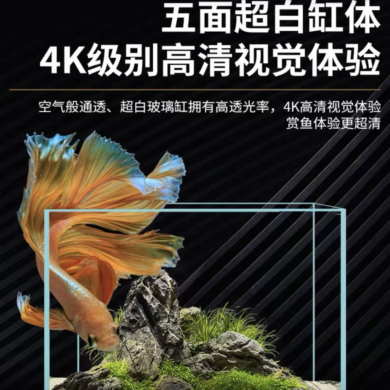 淘金晶五线超白玻璃鱼缸长方形超白缸溪流缸裸缸客厅2025新款空气缸