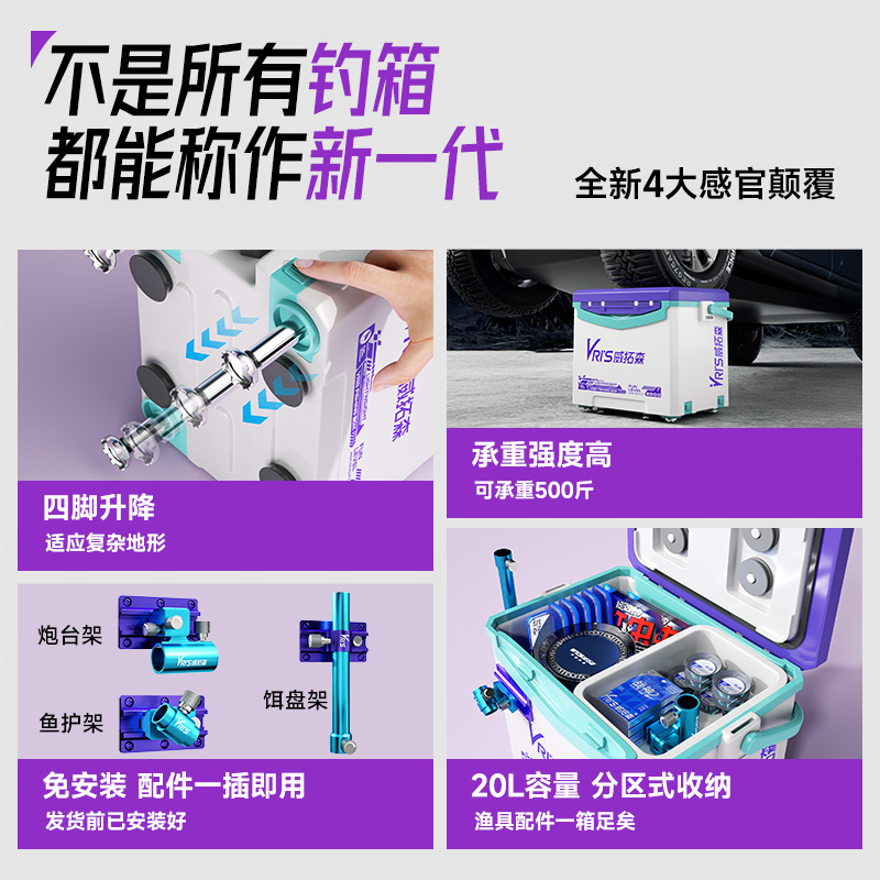 天猫威拓森玩趣炫紫超轻钓箱全套多功能2025新款钓鱼箱野钓装备免安装