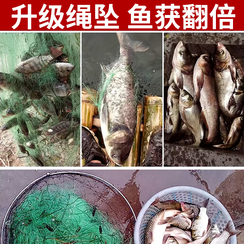 淘新品绳坠冰蓝丝绳包坠丝网渔网鱼网粘网捕鱼三层鲫鱼沉网