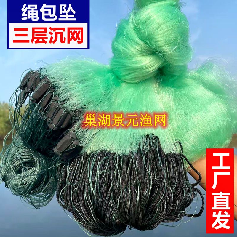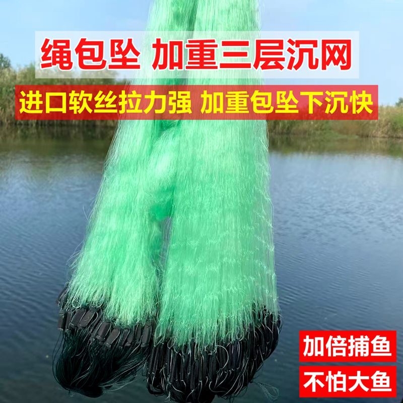 三层沉网柔丝沾鱼网小套粘大鲫鱼草鱼鲢鳙渔网加粗加重捕鱼网挂网