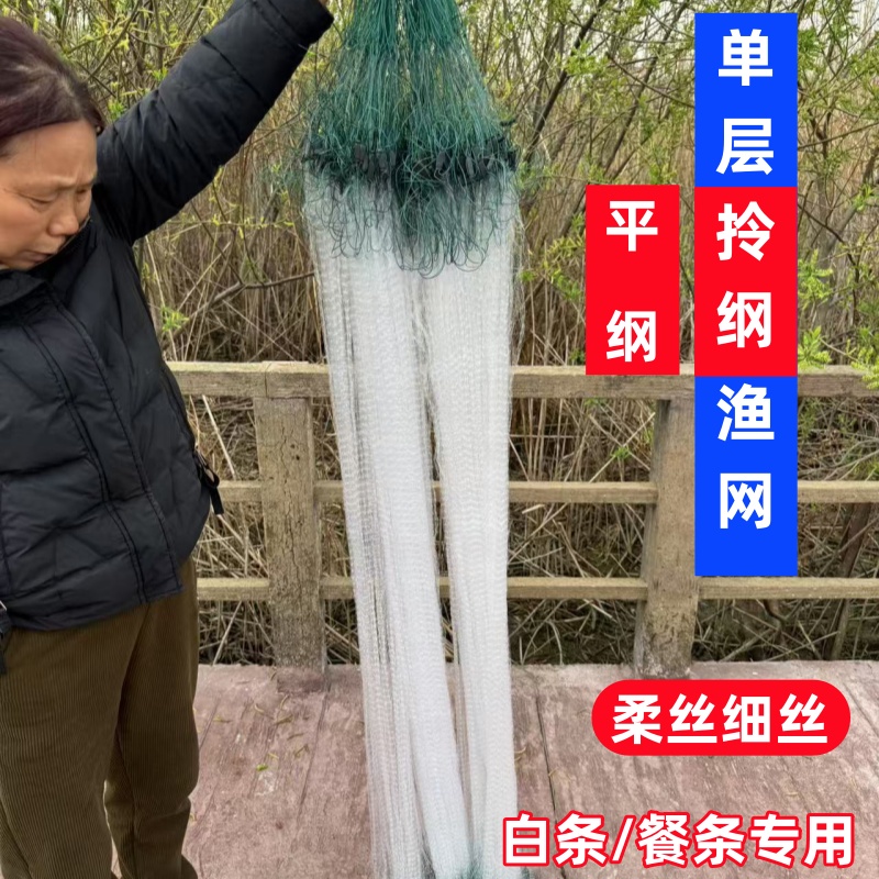 天猫白条网渔网粘网拎纲平纲单层小鱼网餐条网丝网浮网沉网捕鱼网一指