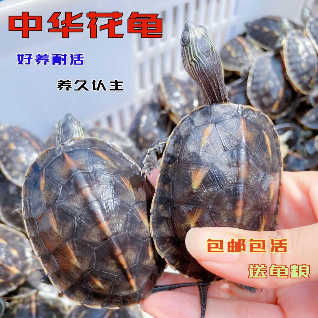 中华花龟小乌龟活物珍珠龟六线草龟花龟苗活体宠物水龟长寿观赏龟