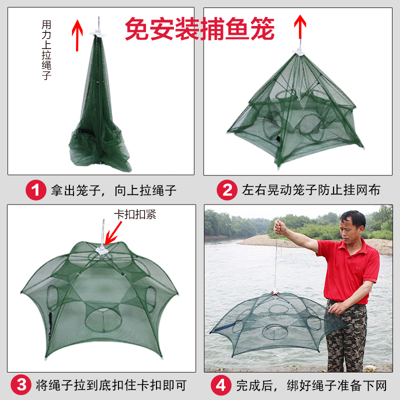 开放式折叠捕鱼笼虾笼鱼网抬网搬网台网渔网龙虾网抓鱼搬筝手抛网