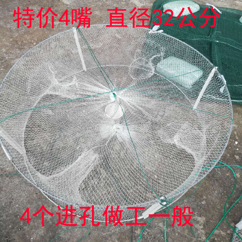 淘宝鱼网白色圆形折叠5嘴捕鱼笼虾笼虾网捕小鱼网渔网捕鱼工具黄鳝笼