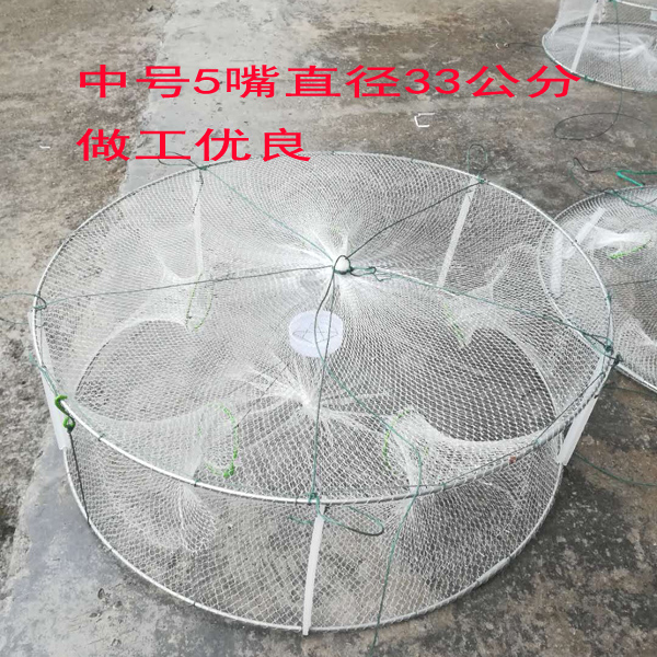 商品介绍:这款鱼网为白色圆形折叠式捕鱼笼,适用于捕捉鱼类、虾类及黄鳝等。其设计独特,拥有5个嘴部入口,有效提高捕捉率。网面材质坚固耐用,易于清洗和折叠存储。作为捕鱼工具,它非常适合垂钓爱好者及渔民使用。该捕鱼笼操作简单,效果显著,是捕捉小鱼虾的理想选择。无论是专业捕鱼还是休闲娱乐,这款折叠式捕鱼笼都是您的得力助手。