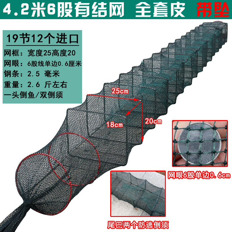 商品介绍:这是一款高效实用的捕鱼工具,包含龙虾笼、虾笼、渔网等多种功能。产品特点在于设计巧妙,能够折叠,方便携带和存储。该商品不仅适用于捕捞龙虾、螃蟹等水生生物,也可用于捕捉鱼类和黄鳝。其坚固耐用的材质保证了其使用寿命,让您在捕鱼过程中更加得心应手。此外,有结设计更增加了其安全性和可靠性。这款渔网是您在海洋或湖泊捕捞水生生物的绝佳选择,是垂钓爱好者的理想装备。