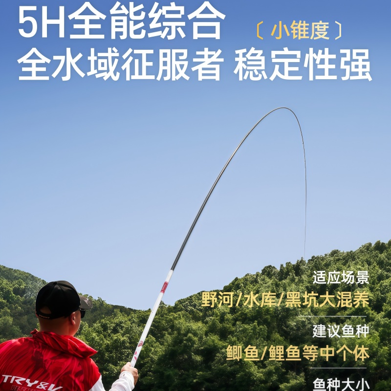 淘双宝宏图轻量小综合竿5H鱼竿手杆超轻超硬钓鱼竿台钓杆极轻版野钓