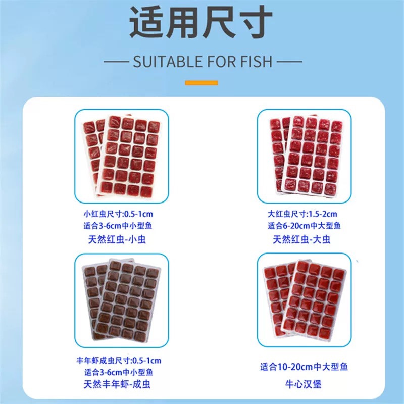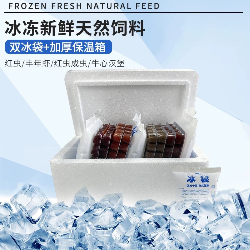 淘宝红虫冰冻牛心汉堡丰年虾冷冻红线血虫鱼粮金鱼食七彩六角龙鱼饲料