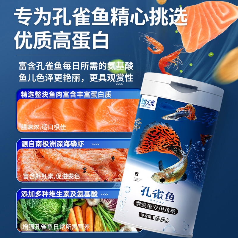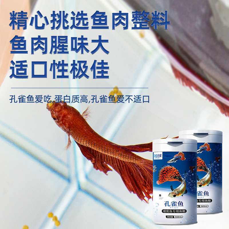 淘三友创美孔雀鱼薄片热带鱼饲料鱼粮鱼食110g小型鱼观赏鱼饲料鱼粮