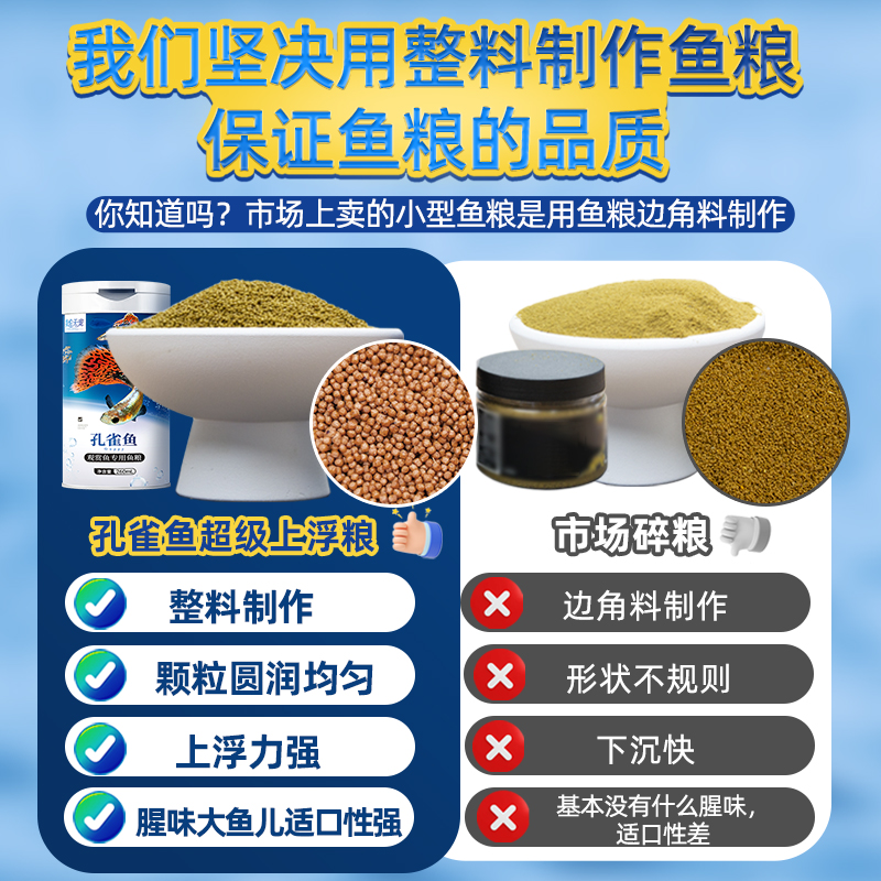 淘金鱼饲料观赏鱼锦鲤鱼上浮鱼粮不浑水热带鱼通用鱼粮食小颗粒包装