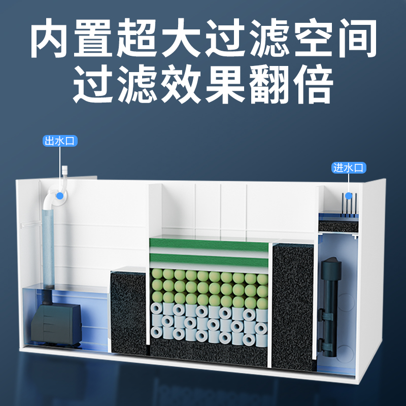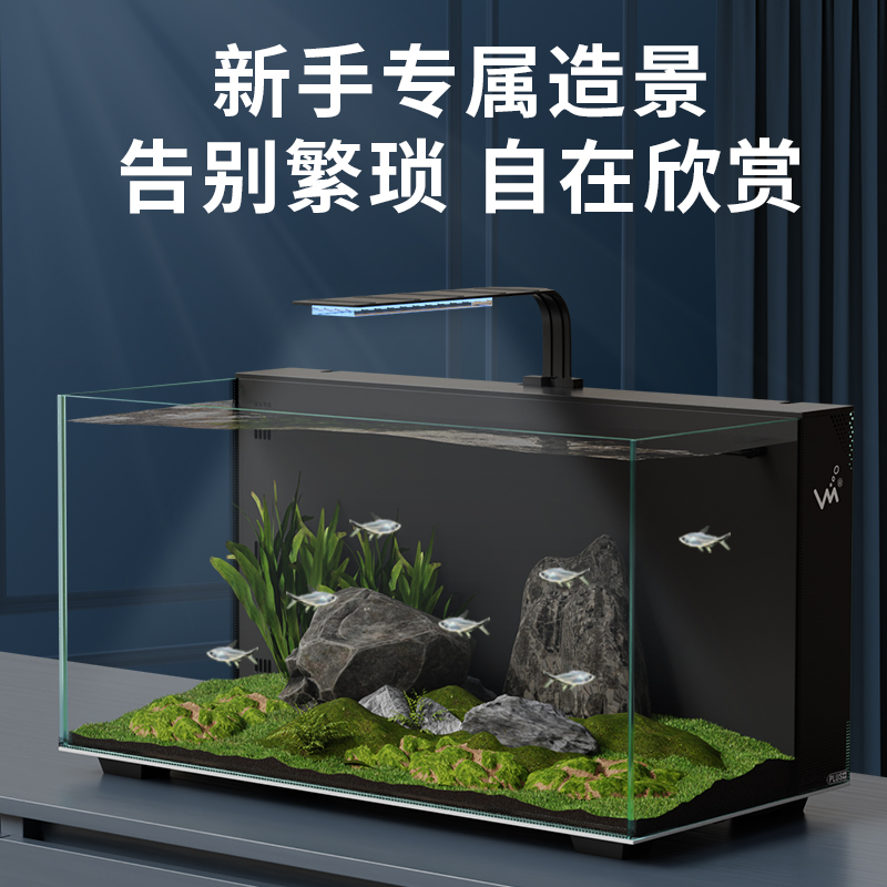 淘宝小型鱼缸家用桌面客厅办公室背滤生态免换水自循环超白玻璃水族箱