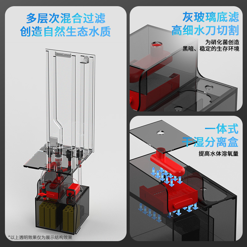 赫希四方缸玻璃底滤强排免换水生态空气缸铝合金家用兰寿鱼缸超白