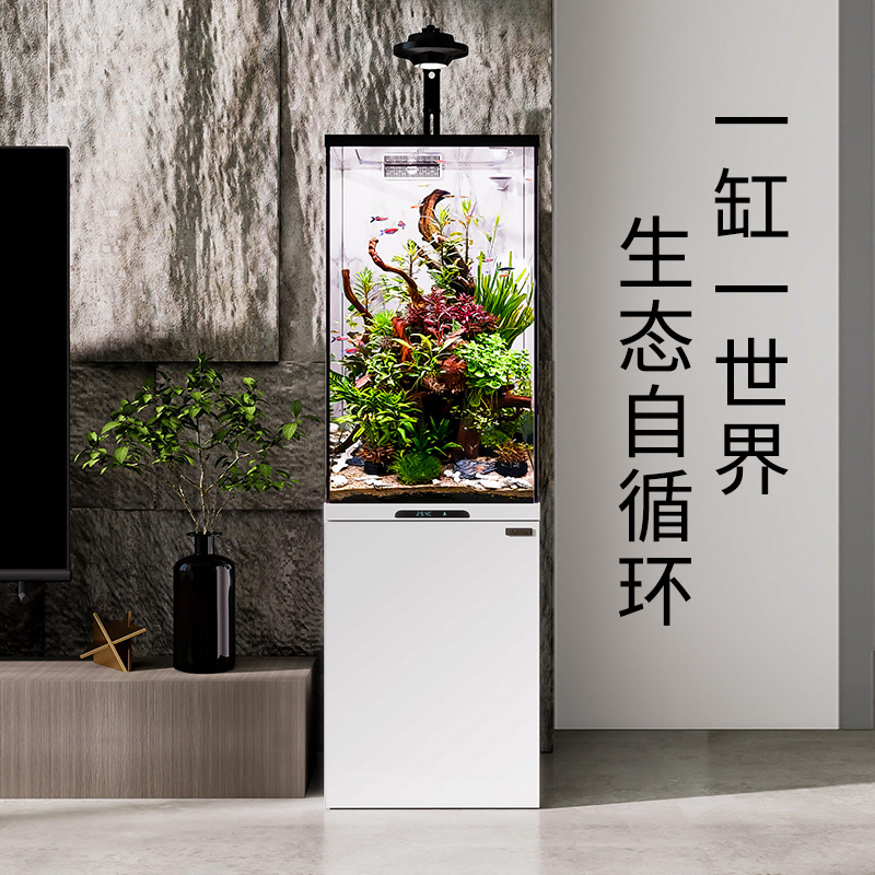 天森森25新款窄溢流底过滤鱼缸 超白玻璃客厅家用水族箱生态落地缸