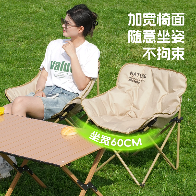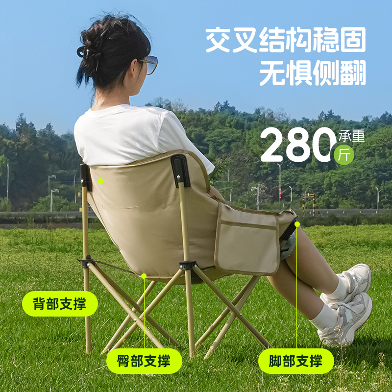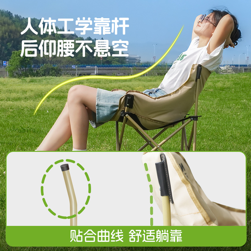 淘宝户外折叠椅月亮椅高靠背露营椅子便携折叠躺椅钓鱼凳沙滩野餐桌椅