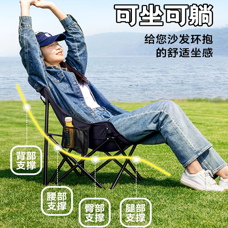 天猫月亮椅户外折叠椅露营椅子桌椅沙滩椅便携躺椅休闲野餐钓鱼椅新款