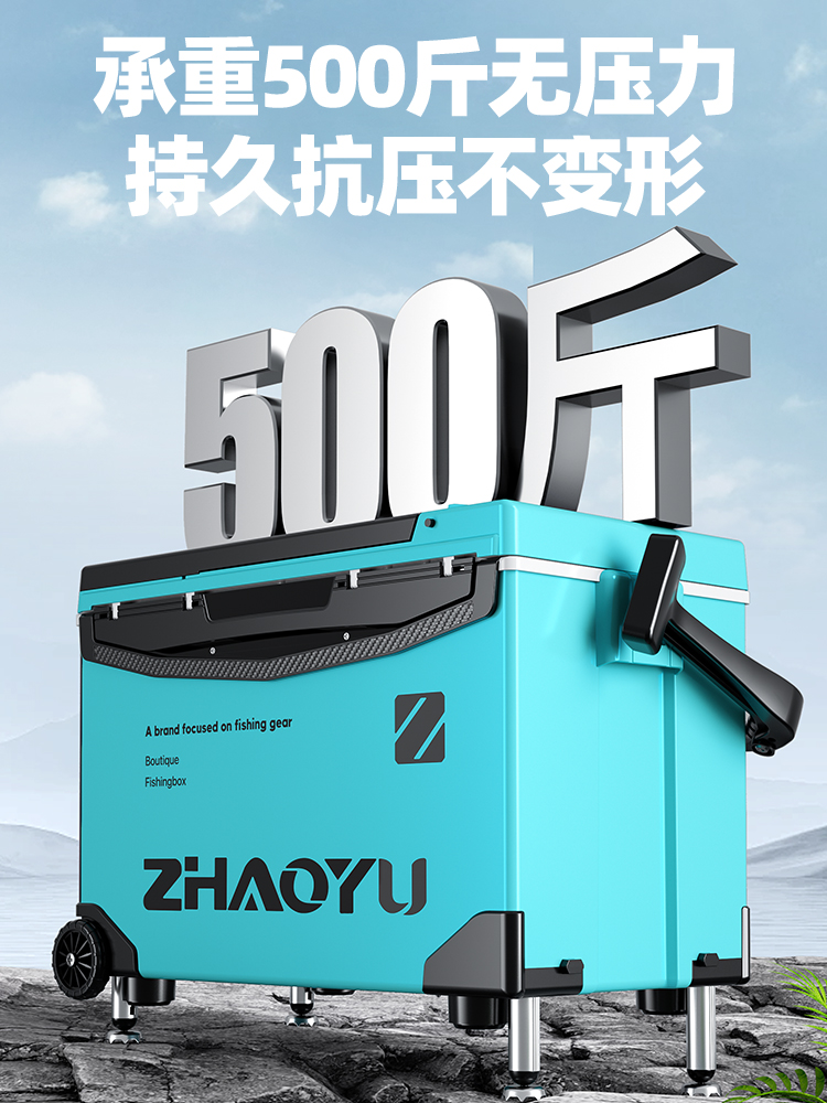 淘花喜29L钓鱼箱多功能超轻超硬六面聚氨酯四脚升降钓箱高坐姿加硬