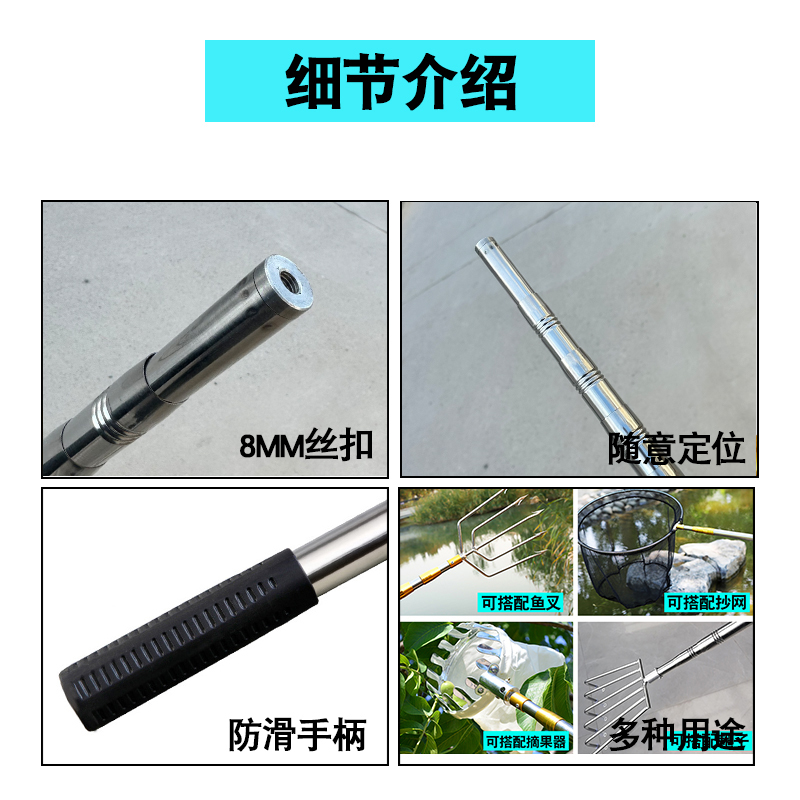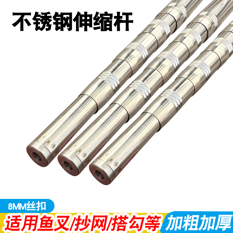 淘宝加厚不锈钢抄网杆裸竿超硬钓鱼抄鱼捞鱼网抄可伸缩抄网杆鱼叉杆