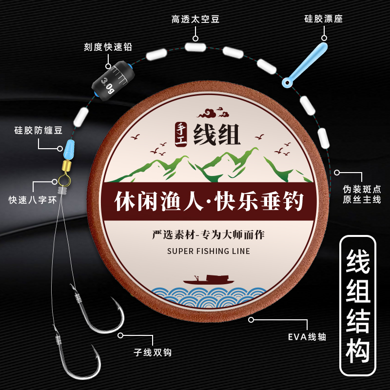 淘宝手工精绑鱼钩绑好成品主线组鱼线套装钓鱼主线子线双钩带浮漂全套