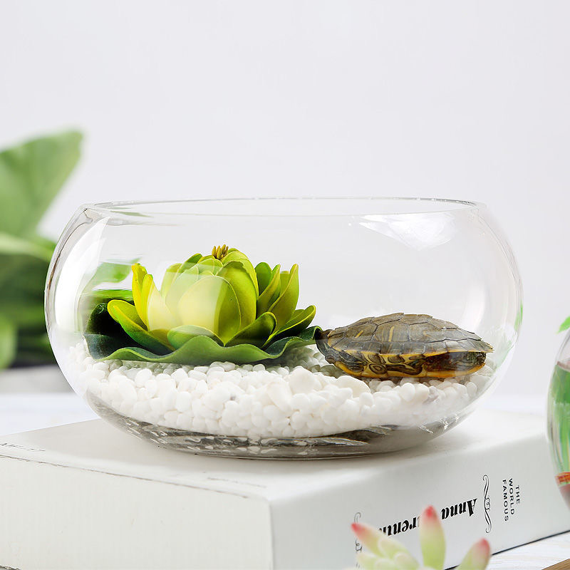 淘宝创意办公室小鱼缸加厚透明玻璃乌龟缸客厅家用桌面圆形迷你金鱼缸