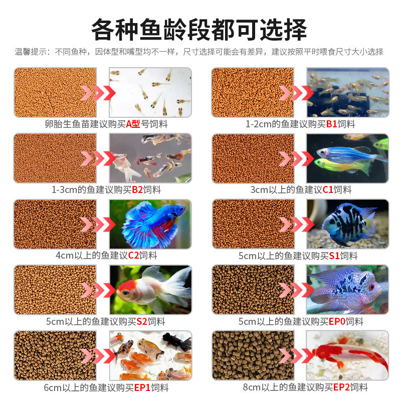 锦鲤饲料金鱼专用家用鱼料通用鱼食观赏鱼孔雀鱼粮鹦鹉鱼大小颗粒