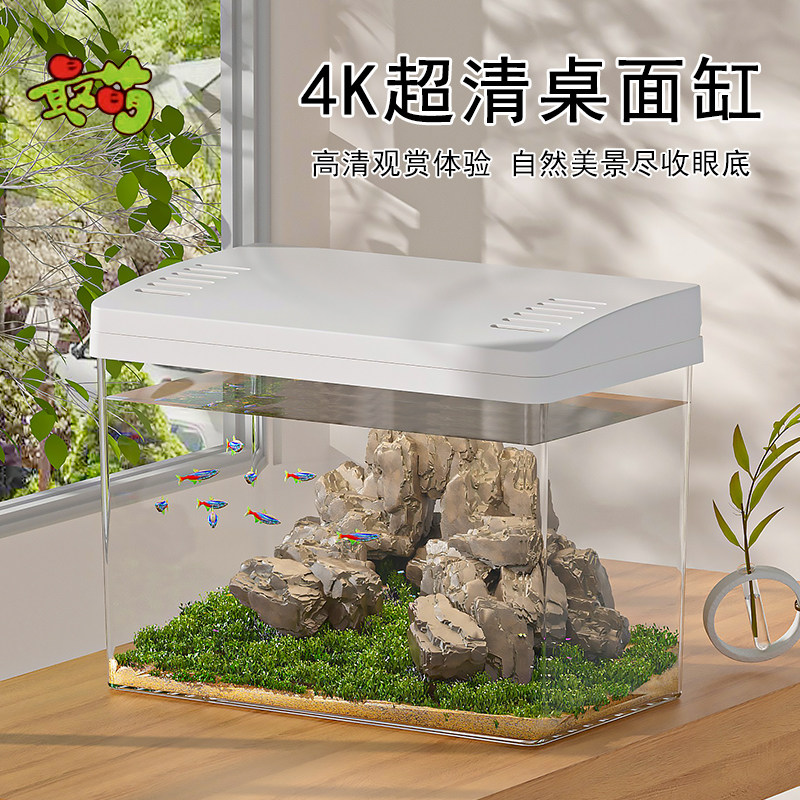 新款鱼缸桌面造景超清观赏客厅家用循环过滤制氧小金鱼斗鱼水族箱