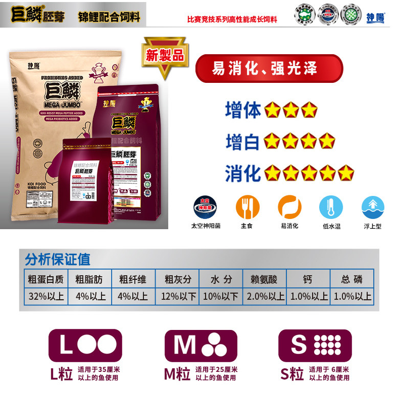 神阳巨鳞锦鲤鱼饲料胚芽易消化低温专用冬季鱼粮冬天鱼食赛级增色