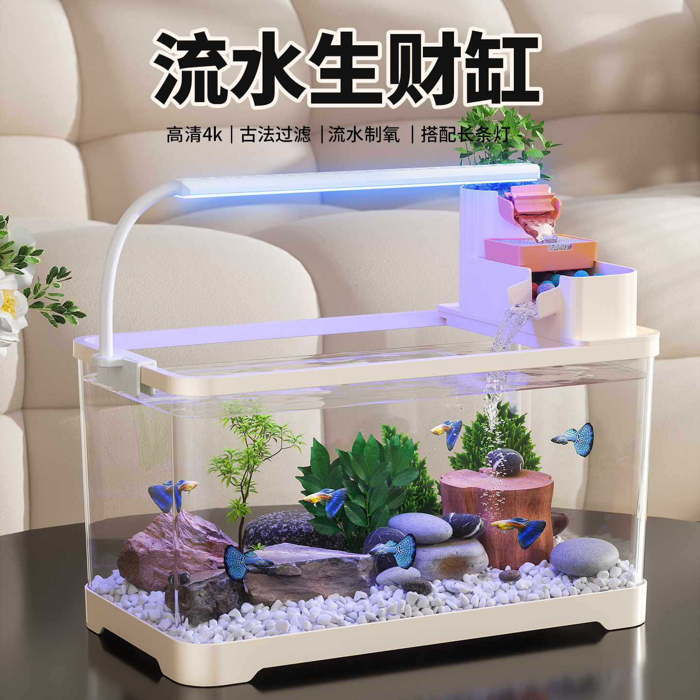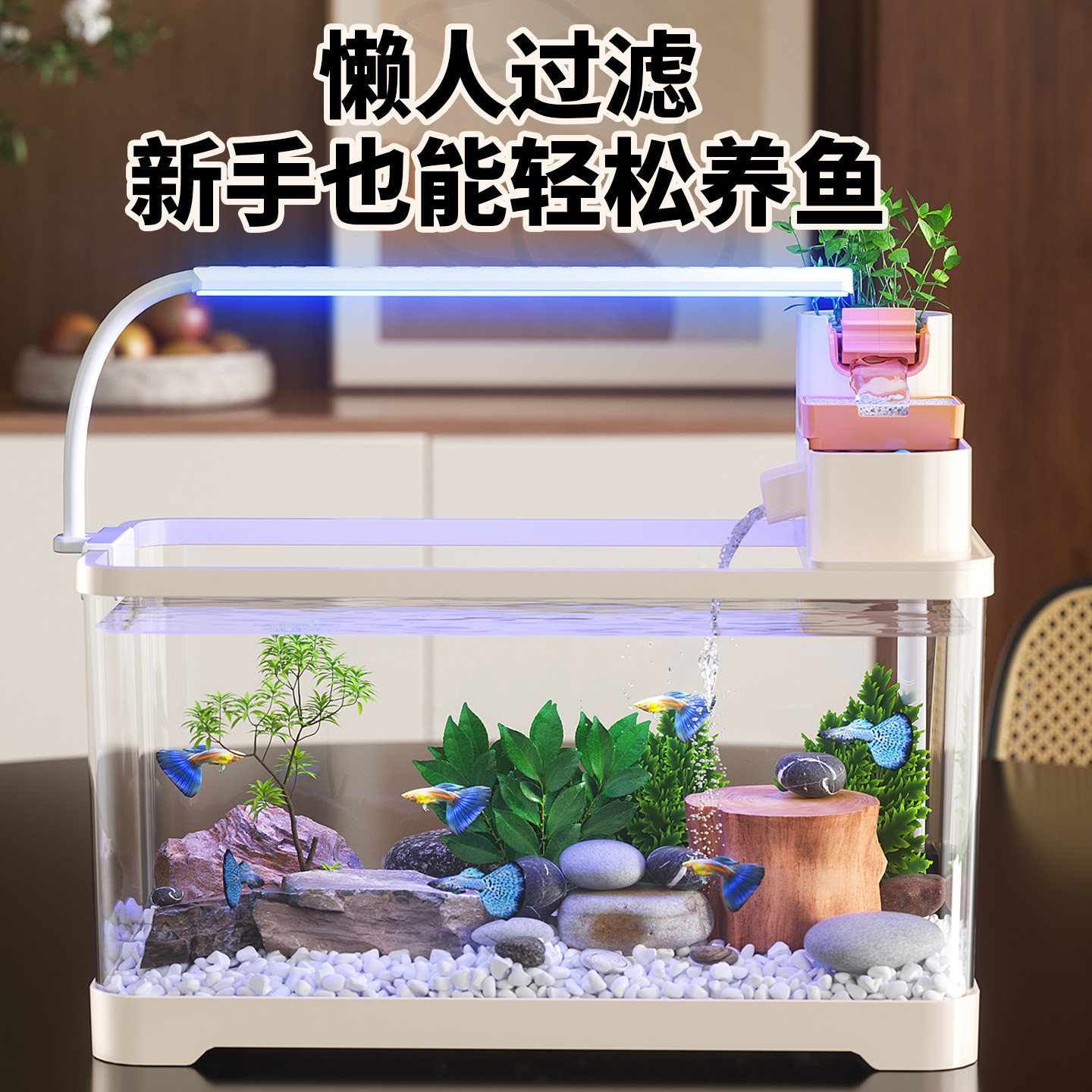 天猫古法鱼缸过滤制氧一体机全自动款客厅2025新款小型生态桌面金鱼缸