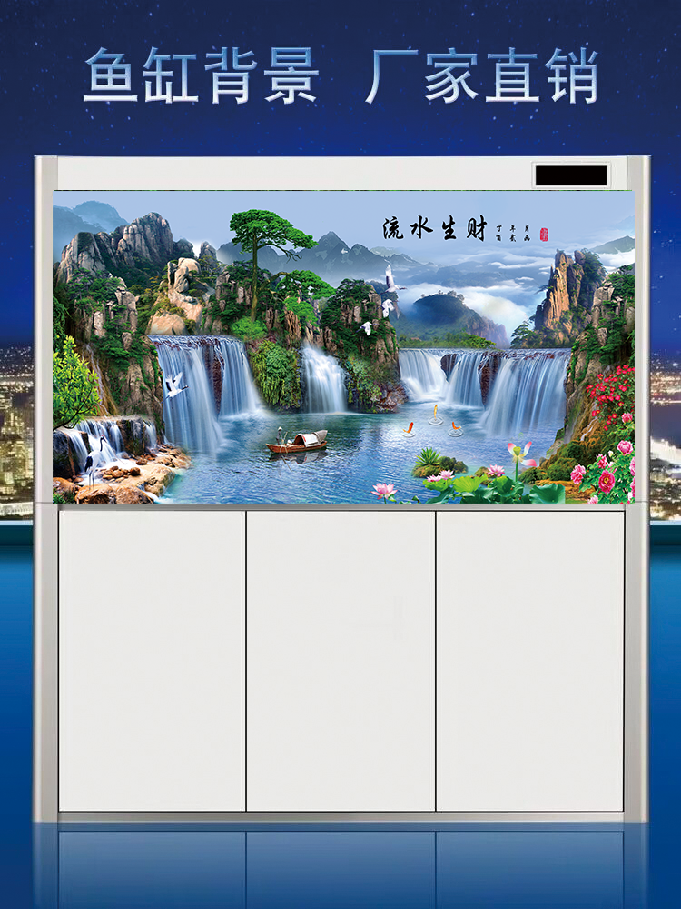 淘宝鱼缸背景贴纸 新款高清贴图定制风景字画流水生财缸外带胶水族箱