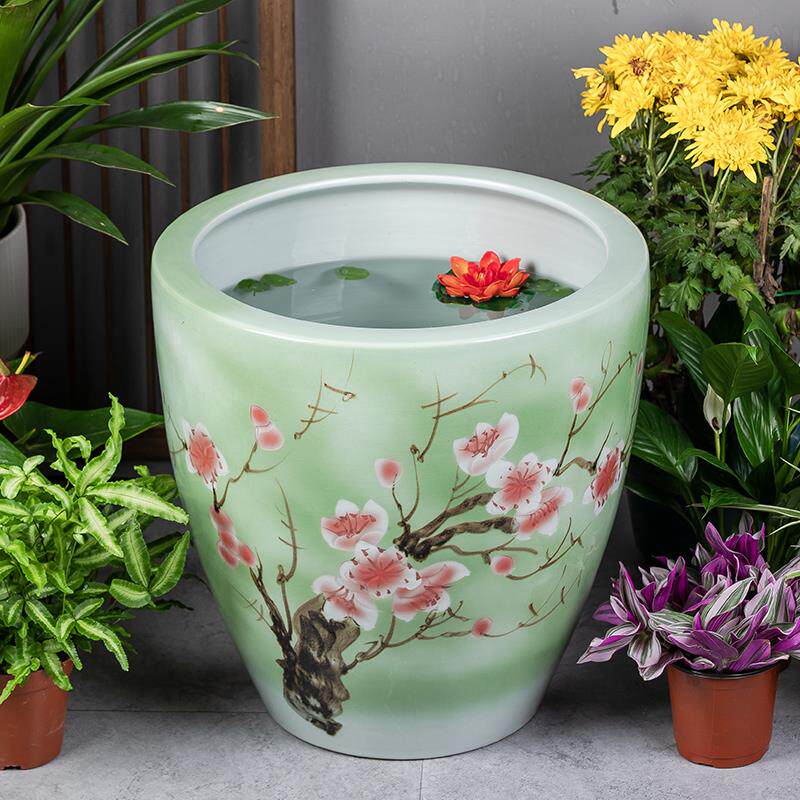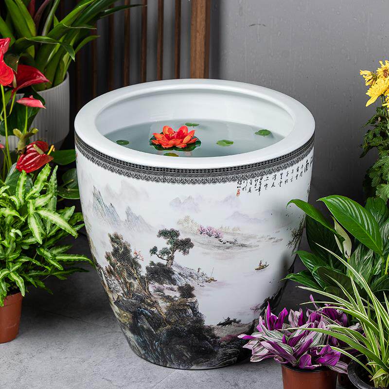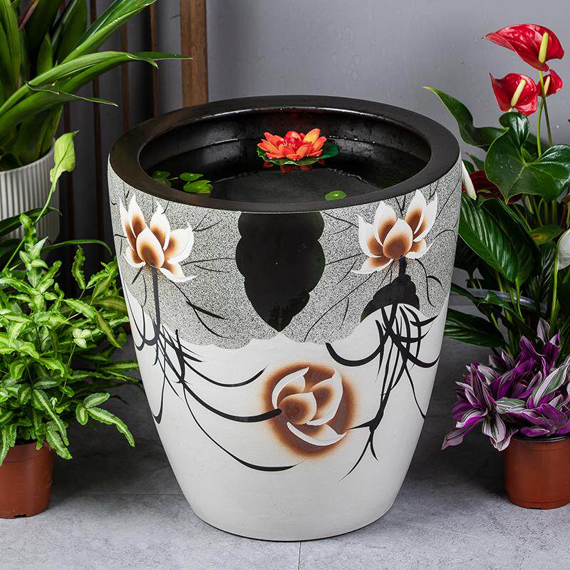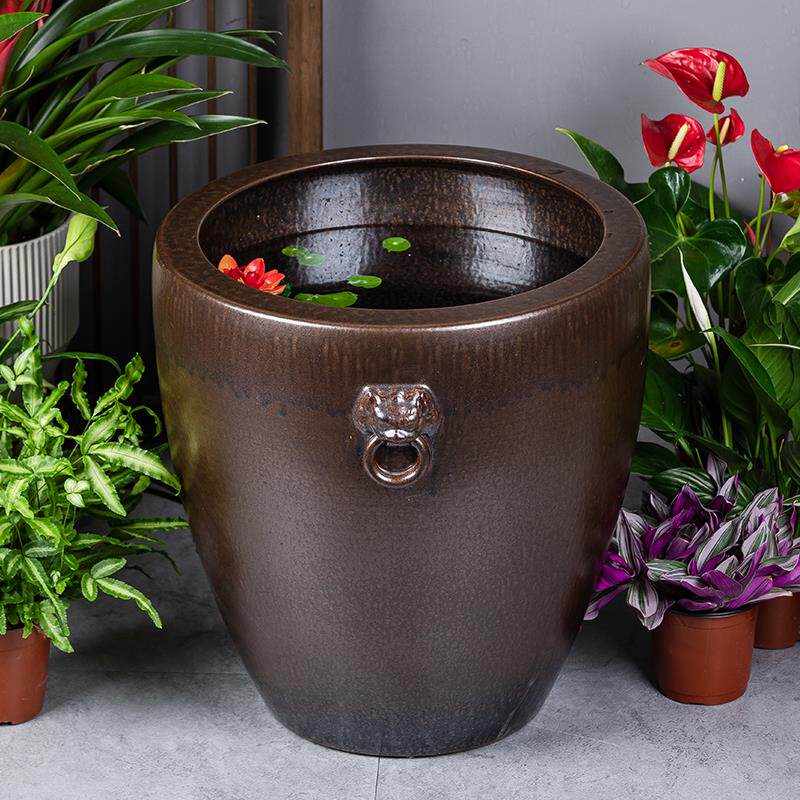 天猫加高陶瓷大缸古法养鱼缸客厅阳台金鱼缸陶罐循环流水造景老式水缸