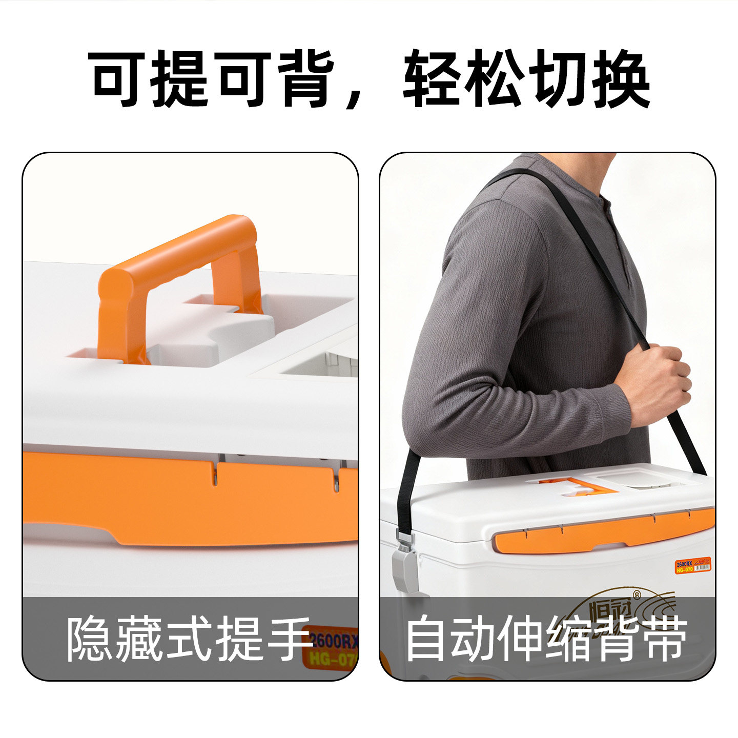 天猫恒冠钓箱海钓专用保温箱20/26L可背带盖大容量加厚结实耐用钓鱼箱